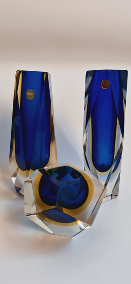 2 jarrones y cuencos de cristal de Murano de mediados de siglo