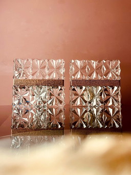 Par de apliques de pared de cristal prensado y cobre