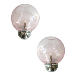 Pareja de apliques modernos de cristal artístico de Murano rosa nacarado y latón