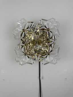 3 apliques de pared vintage de Limburgo en oro y cristal