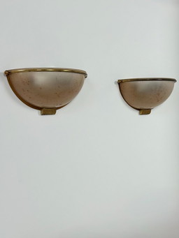 Apliques de pared asimétricos de latón con pantallas de tulipa opalina - Años 50/60