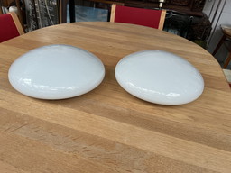 2 lámparas de techo de cristal blanco de mediados de siglo 'Moon' Space Age