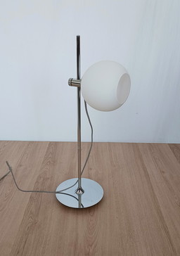 Lámpara de mesa cromada con pantalla ovalada de cristal opalino, años 60