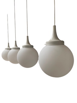 Lámpara de techo Peill & Putzler “KIBO” (Modelo 71333) – Alemania, cristal opalino/transparente, vintage