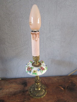 Lámpara de mesa vintage de cerámica con globo en forma de pera "Morning Mist"