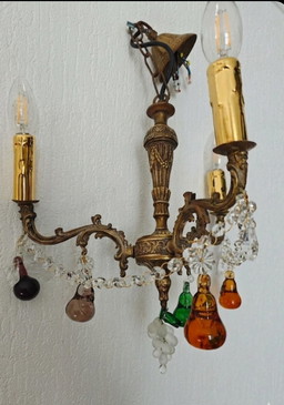 Lámpara solitaria de mediados de siglo – Oberglas Austria – cristal ámbar y latón