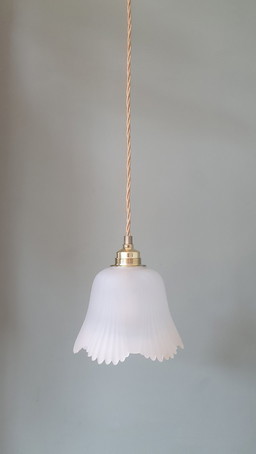 Lámpara colgante flor, modelo Alba, 3 pétalos, estructura de metal dorado y tela (color personalizable)