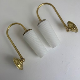 Par de lámparas antiguas de opalina y latón.