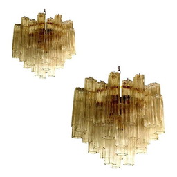 Lámpara de araña contemporánea de cristal de Murano color ámbar “Poliedri”