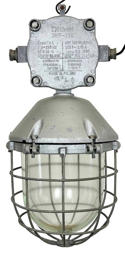 Lámpara industrial gris de aluminio fundido a prueba de explosiones, década de 1970