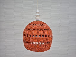 Lámpara colgante de ratán naranja. Lámpara vintage de mimbre con cadena.