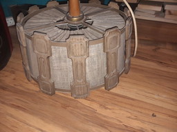 Lámpara colgante escandinava vintage, madera y tela.