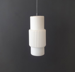 2 lámparas colgantes de vidrio opalino Peill y Putzler, década de 1960