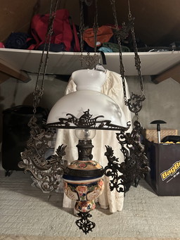 Lámpara de araña italiana vintage de teca, latón y cristal opalino.