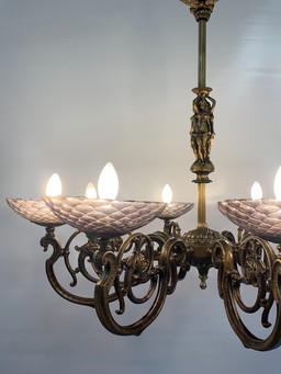 Lámpara de araña de bronce Seguso restaurada de la década de 1950