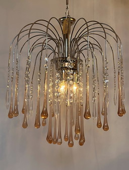 Lámpara de araña vintage de cristal en cascada de Limbourg, 1970