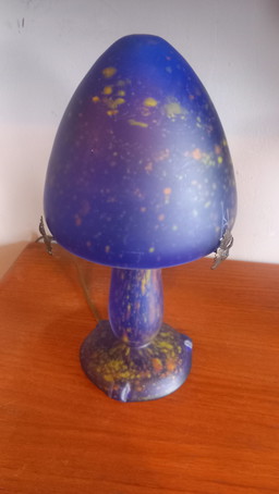 Lámpara vintage espacial de opalina con forma de hongo: cerámica azul y cromo únicos
