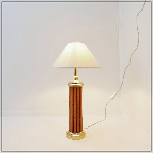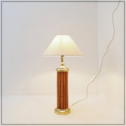 Lámpara de mesa vintage de bambú y latón - años 80