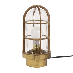 Lámpara de mesa vintage de Massive, con base y pantalla de cristal. Con detalles dorados.