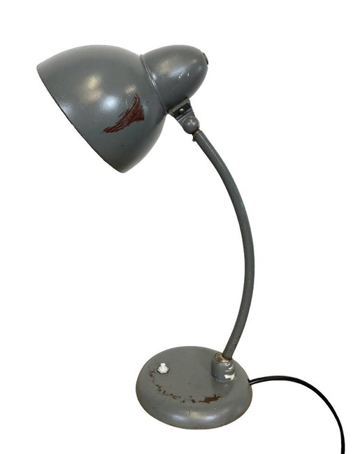 Lámpara de escritorio industrial de cuello de cisne esmaltado en gris de Siemens, década de 1950