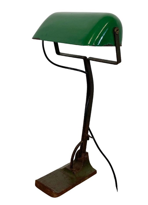 Lámpara de banco vintage de esmalte verde, década de 1930