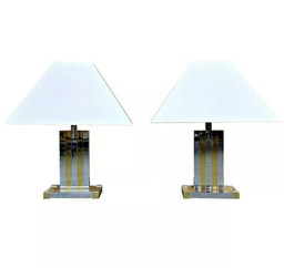 Juego de 2 lámparas de mesa grandes de mármol, años 70