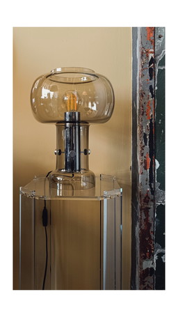 Lámpara de mesa de cristal de mediados de siglo, década de 1970