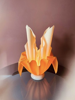 Lámpara de mesa de diseño lúdico: metal figurativo y vidrio mate