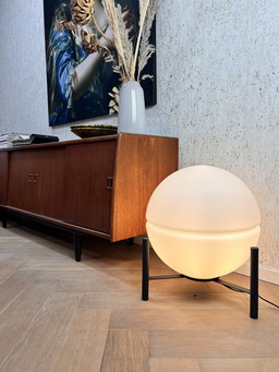 Lámpara de pie de diseño D&T con globo de cristal y patas de metal