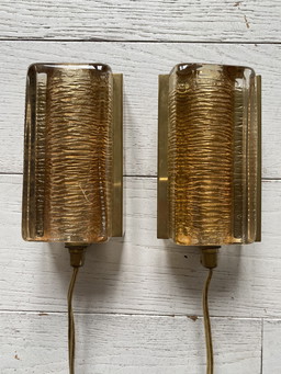Lámpara de pared B+M Leuchten de latón mate/pulido y cristal flameado blanco mate, años 90
