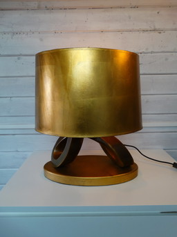 Lámpara de mesa Bjorn Wiinblad de Lyfa en madera de color naranja, motivo negro y dorado