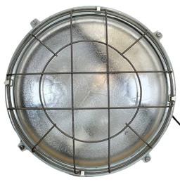 Lámpara industrial de aluminio de gran tamaño con rejilla de hierro de Siemens, años 80