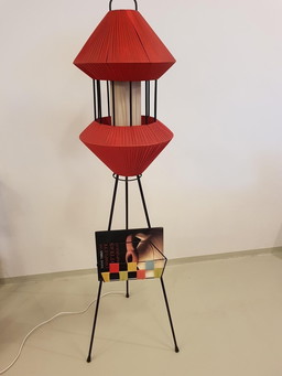 Gran lámpara brutalista Accolay, base de cerámica, pantalla de metal y resina, 1960
