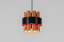 Lámpara de techo Art Déco de cristal, lámpara colgante vintage de cristal rosa esmerilado con soporte de cobre