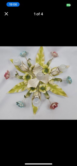 Lámpara de pájaro de porcelana italiana Mangani con partes doradas y pantalla original