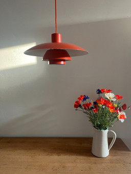 Rara lámpara colgante vintage diseño Jacob E. Bang - naranja/rojo