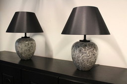 Gran lámpara de mesa de cerámica de PAN KERAMIK con una nueva pantalla hecha a mano por nosotros.