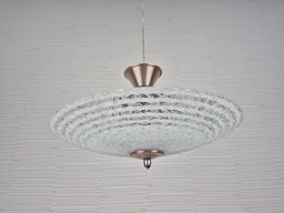 XL Vintage 1970s-80s Murano blown glass swirled ceiling lamp. Three-light, 45 cm diameter.