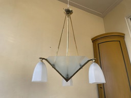 Lámpara colgante grande de cobre de mediados de siglo con 4 casquillos