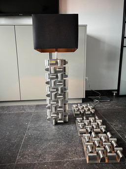 Lámpara de sobremesa, rediseñada, lámpara de sobremesa de cuerda, única, metal 5 anillos