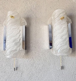 2 lámparas de pared vintage de latón y cristal esmerilado, Paul Neuhaus '70