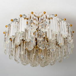 Lámpara de techo o de pared de cristal dorado estilo Hollywood, años 70