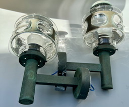 Aplique de pared de doble luz beige y verde de mediados del siglo XX con cable de tracción, años 70