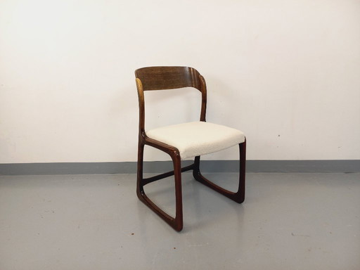 Silla trineo vintage de la marca Baumann en madera y tejido bouclé de los años 70