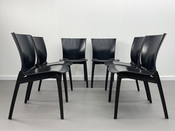 Gran juego de 6 sillones de cuero negro '905 Armchairs' de Vico Magistretti para Cassina
