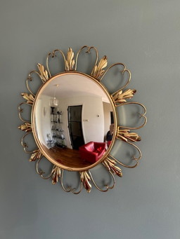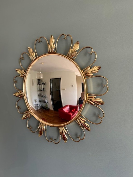 Deknudt Bélgica Gran espejo solar ovalado con hojas de acanto doradas 1970