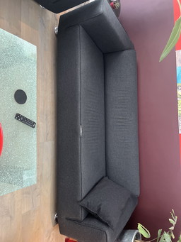 Sofá Heelz de 3 plazas en cuero negro, diseño en stock