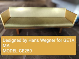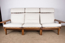 Gran sofá danés en roble macizo y tela, modelo Ge375 de Hans Wegner para Getama 1960.