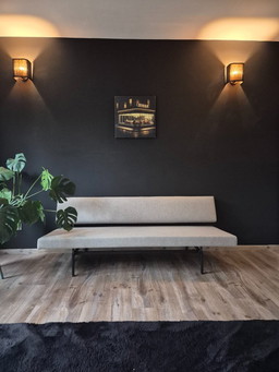 Vintage Gijs van der Sluis | Sofá cama Gispen | sofá rojo piedra recién tapizado