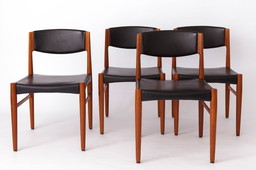 Juego de 4 sillas de comedor de teca Grete Jalk para Glostrup, años 60 | Sillas danesas de mediados de siglo con asientos de cue